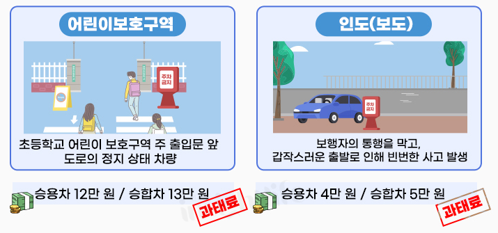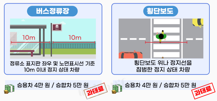 횡단보도 위나 바로 앞에 차량을 세우는 것은 보행자의 안전을 위협하며, 보행자의 시야를 가리어 교통 사고로 이어질 수 있습니다.