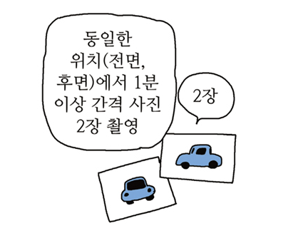 ✔ 동일한 위치(전면, 후면) 에서 1분 이상의 간격으로 사진 2장 촬영